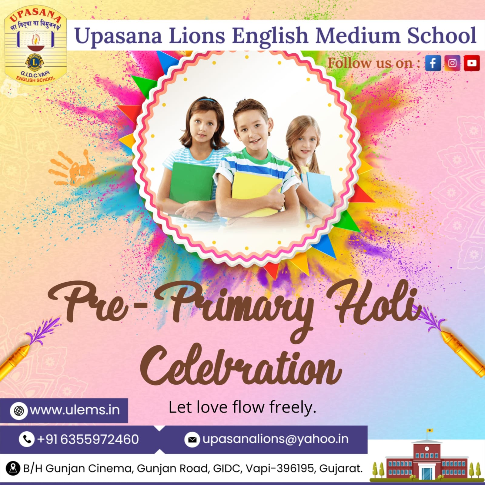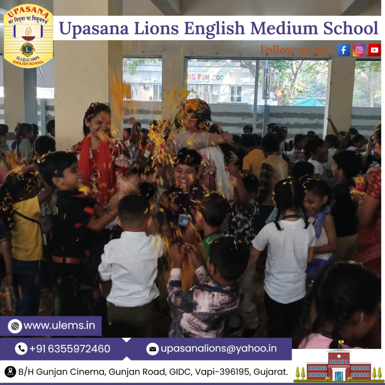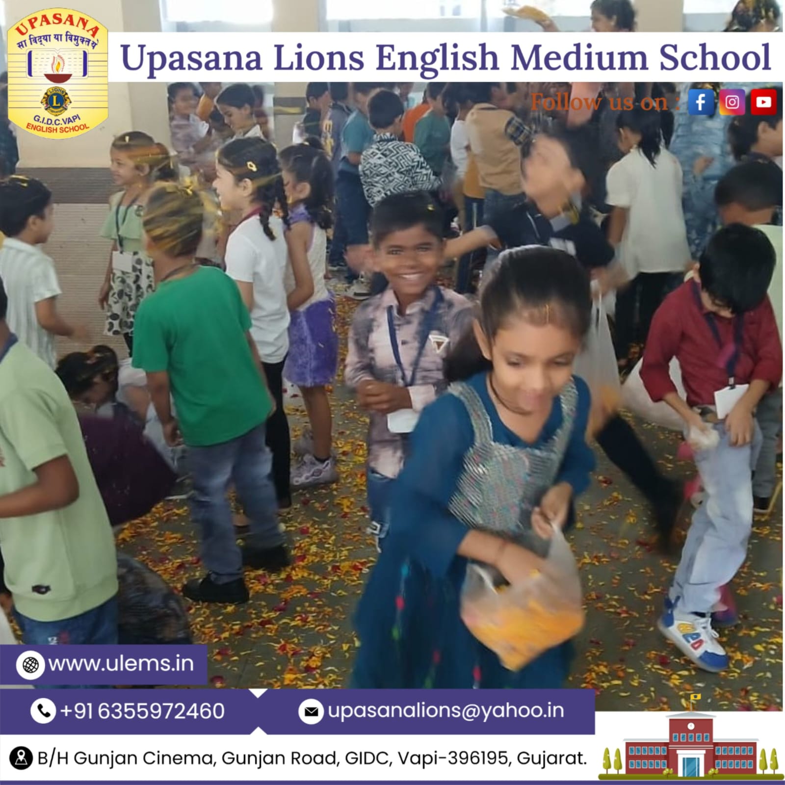 Description : 🎨🌸 Holi Celebration by Our Pre-Primary Tiny Tots 🌸🎨 Our little stars from the Pre-Primary Section celebrated Holi with immense joy and excitement! The campus was filled with bright smiles, cheerful laughter, and vibrant colors as our Tiny Tots enjoyed the festive spirit in a safe and eco-friendly manner, where children enjoyed playing with flowers under the guidance of their teachers. Dressed in colorful outfits, they made the celebration even more lively and heartwarming. The celebration beautifully reflected the values of love, friendship, sharing, and togetherness. 🌈✨ It was truly a delightful and memorable day for our Little Champions! ✨🌈