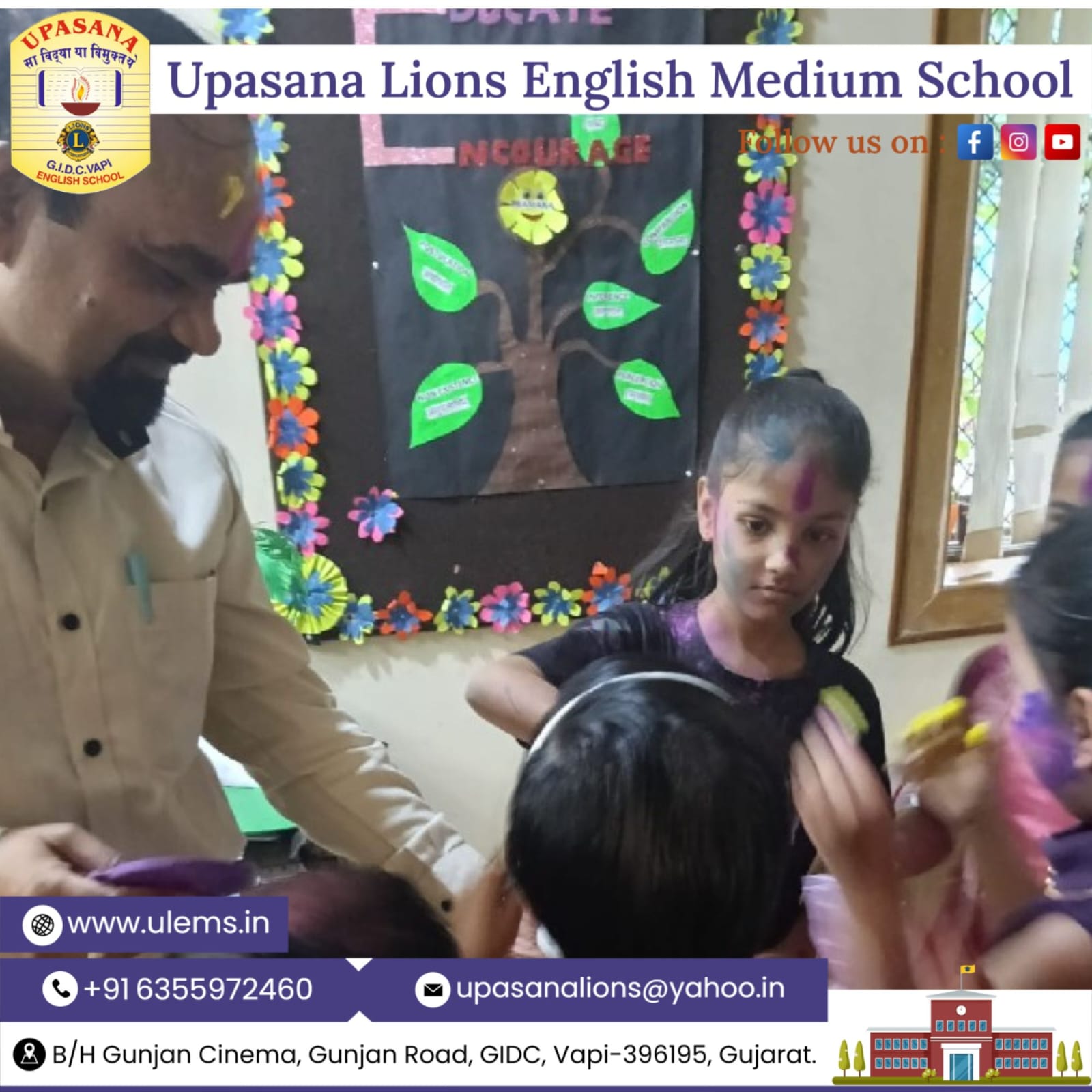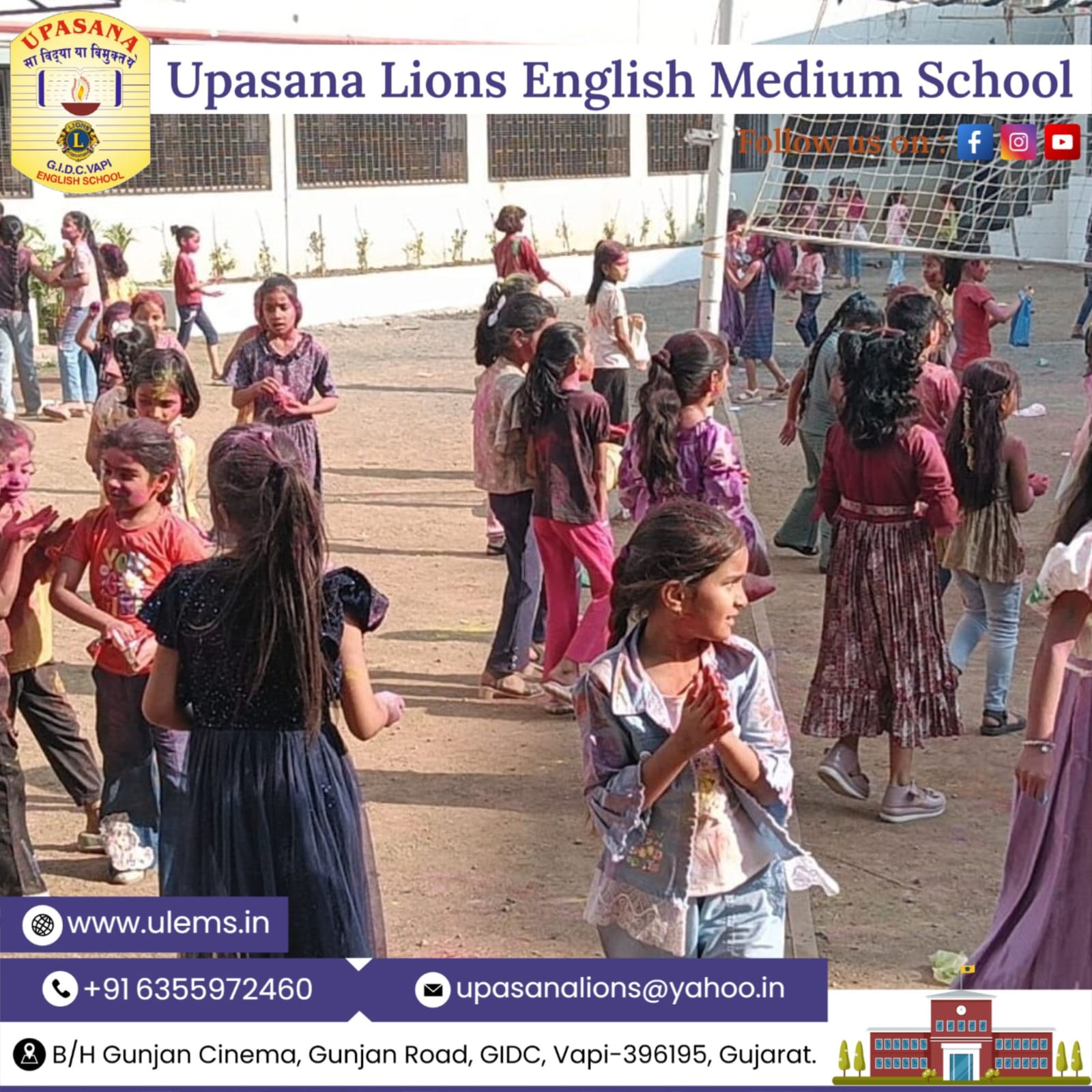 Description : 🎨🌸 Holi Celebration by Our Primary Section Students 🌸🎨 The festival of colors was celebrated with great excitement and joy by our Primary Section students. The campus was filled with vibrant hues, smiling faces, and cheerful laughter as children participated in fun and meaningful activities. Students enjoyed and learned about the importance of Holi — spreading love, unity, and positivity. The celebration was conducted in a safe and eco-friendly manner, making it both joyful and responsible. It was truly a colorful and memorable day for our young learners! 🌈✨ Wishing everyone a Happy and Safe Holi! ✨🌈